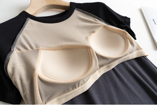 Padded Contarst Round Neck Padded T-shirt