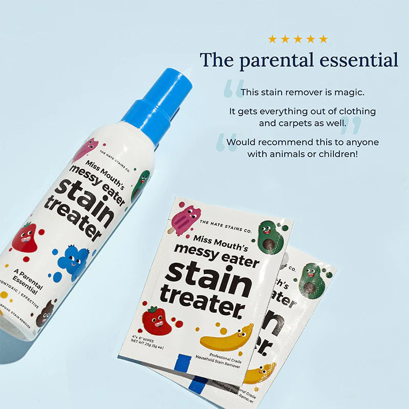 Introducing, Spray, a nontoxic & remarkably effective Multipurpose Stain Remover. It quickly & safely treats all kinds of stains that come with looking after little professional mess makers.