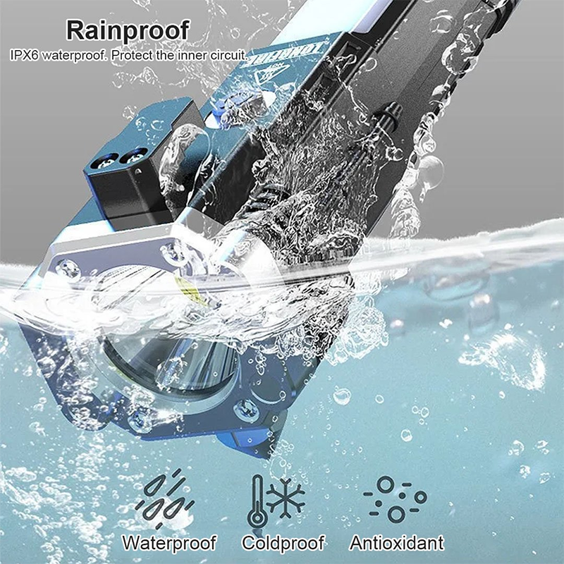 With a powerful magnet on the side of the flashlight head, you could attach it to the car or other metallic surface as a work light, camping lamp, or emergency warning light. It will be your most trusted partner when your car breaks down.