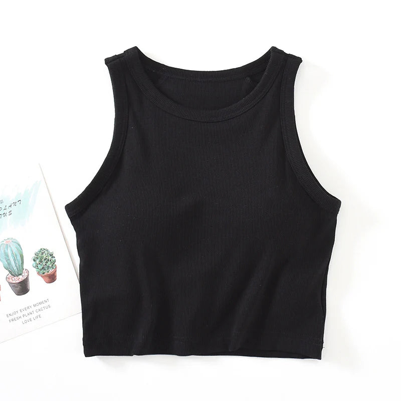 Discover the convenience and comfort of our bra tank top with built-in padding. Made from soft, skin-friendly cotton, it offers a snug fit with an elastic band and integrated chest pads.