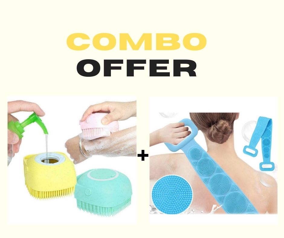 Silicone Bath Body Brush with Shampoo Dispenser + Body Back Scrubber (Combo Pack)