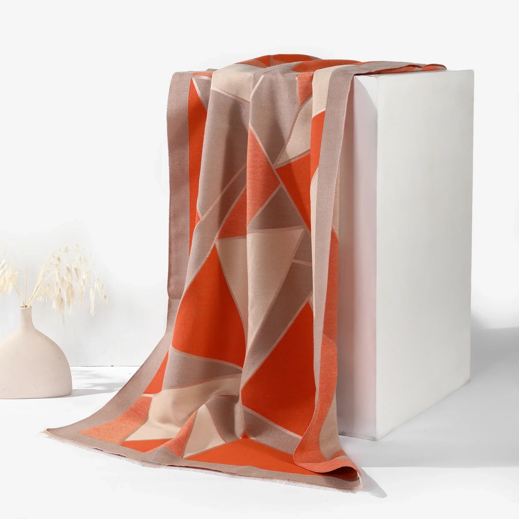 Embrace subtle sophistication with the Velvet Dawn Geometric Scarf, where modern design meets timeless comfort. Its harmonious blend of Orange, Off-White, and Brown hues creates a soothing palette that complements every style, from elegant coats to casual sweaters. Crafted from luxuriously soft fabric, this scarf drapes gracefully and offers gentle warmth without weight. The geometric pattern adds a touch of artistic flair, making it a versatile statement piece for any season and occasion.